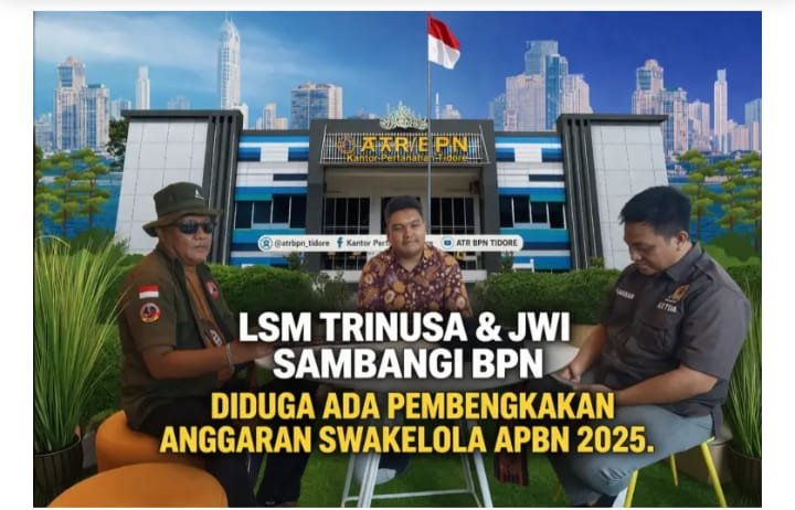 TULANG BAWANG BARAT – Lembaga Swadaya Masyarakat Triga Nusantara Indonesia (Lsm Trinusa) bersama Organisasi Profesi Pers Jajaran Wartawan Indonesia (JWI) mendatangi Kantor Pertanahan (BPN) Tulang Bawang Barat (Tubaba) pada Kamis, 2 April 2026. Kedatangan ini bertujuan untuk mengonfirmasi adanya dugaan ketidakjelasan dan pembengkakan penggunaan anggaran swakelola yang bersumber dari APBN 2025.